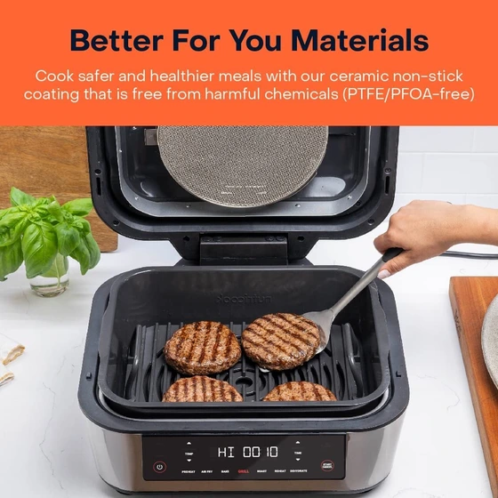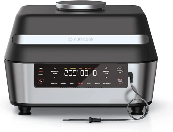امکان انجام گریل گوشت و سبزیجات بدون ایجاد دود, ,, تنظیم میزان پخت گوشت به صورت آب دار تا کاملا برشته شده, ,, مجهز به دماسنج هوشمند با امکان تنظیم دمای پخت ایده آل برای 5 نوع پروتئین گوشت گاو، بره، مرغ، ماهی و گوشت گیاهی