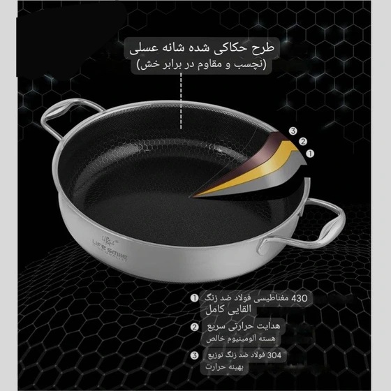 برندلایف سمیلجنساستیل کف لیزریمدلP-18داخل قابلمهلیزری و تفلن کارشده کاملا نچسپکف5لایه و لیزریسایز قابلمه30،28،24،20شعله پخش کنشعله پخش کن حرفه ایسایز ماهی تابه24،28دربپریکستعداد پارچه12پارچه